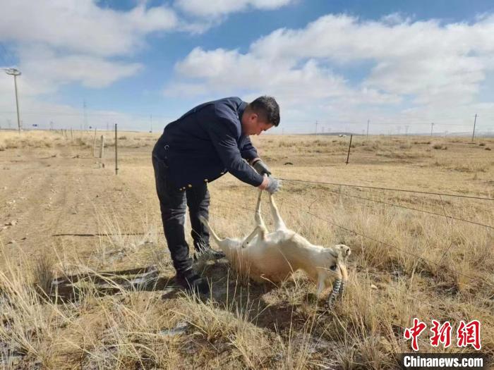 據(jù)介紹,3月12日11時許,青藏集團公司西寧電務(wù)段哈爾蓋信號車間哈爾蓋信號工區(qū)的3名職工在徒步前往管內(nèi)那仁中繼站檢修信號設(shè)備途中發(fā)現(xiàn),有動物掛在網(wǎng)圍欄,無法掙脫。
