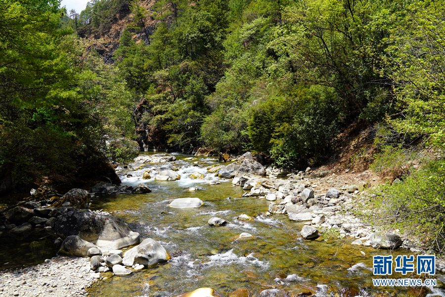 通往七彩瀑布的棧道旁清泉汩汩(4月26日攝)。新華網(wǎng) 柴靜 攝