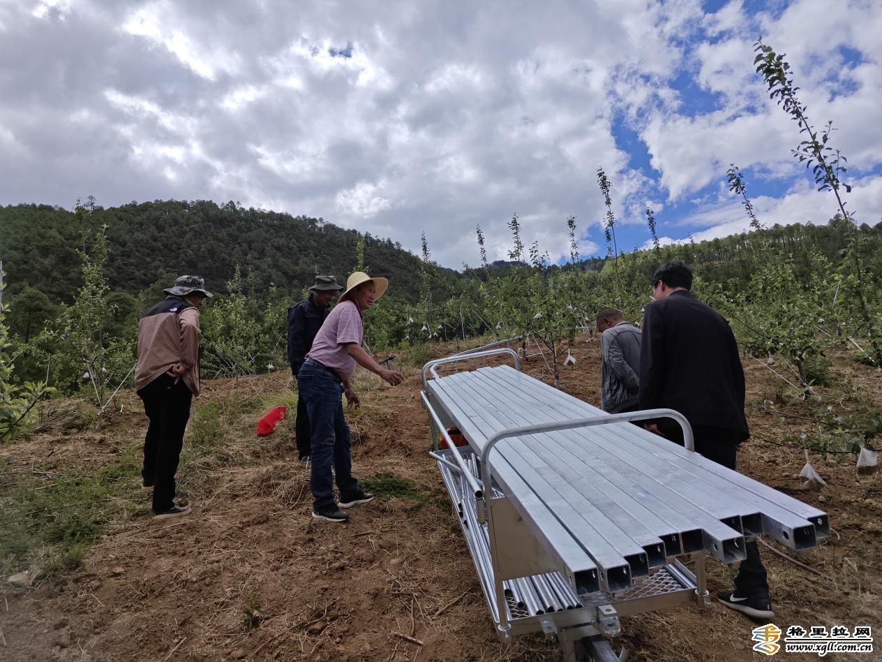 “鋪設(shè)軌道,運(yùn)輸機(jī)完成肥料和果實運(yùn)輸,將節(jié)省勞力,提高果園管護(hù)效率?!惫麍@負(fù)責(zé)人馬志高說。