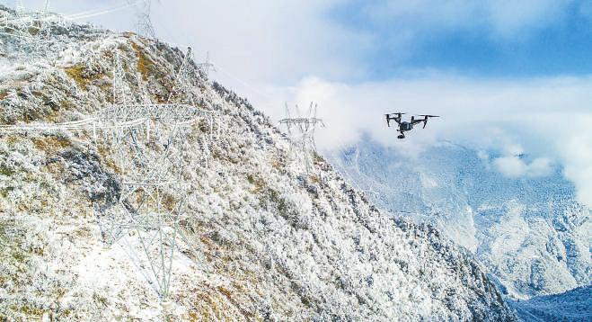 開啟定制無(wú)人機(jī),電力工人巡檢二郎山覆冰線路