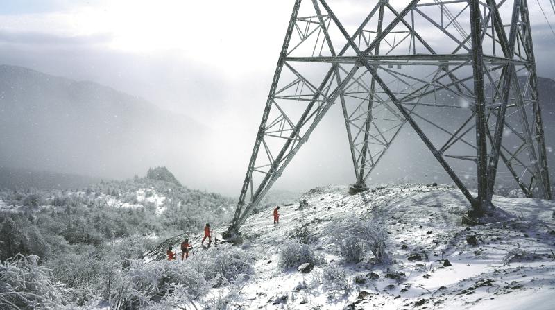 2023年1月16日,國(guó)網(wǎng)四川電力送變電建設(shè)有限公司電力工人正在瀘定縣海拔3000米的二郎山上500千伏康蜀一二線踏雪巡線,確保線路安全穩(wěn)定運(yùn)行(遠(yuǎn)景)。 劉湘釩 攝