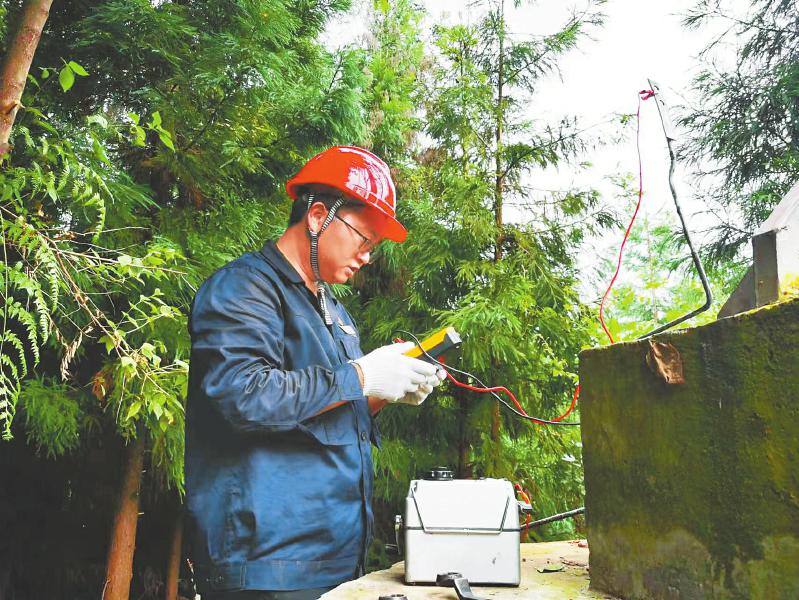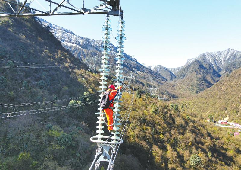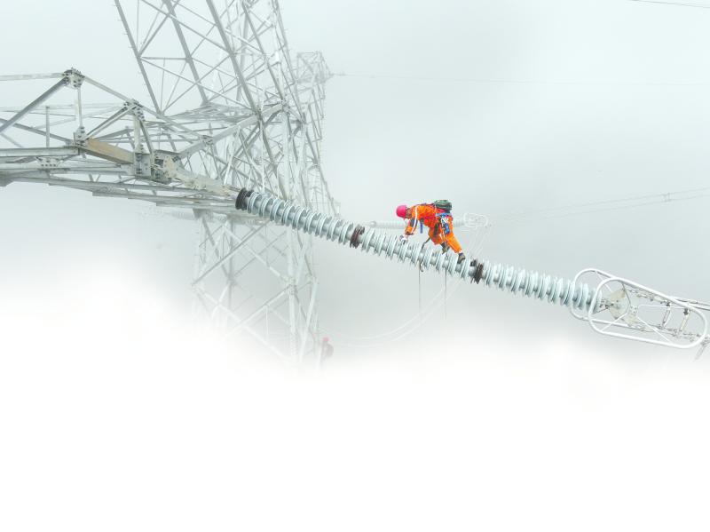 國(guó)網(wǎng)四川送變電公司瀘定分部員工劉云在二郎山檢修500千伏甘姜二線。 潘柱東 攝