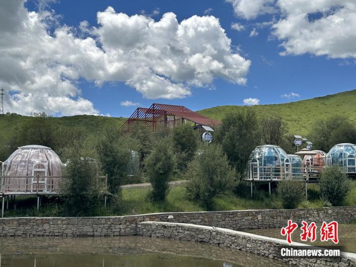 在園區(qū)內(nèi),除了大面積的草場,還能看見一些臨水而建、顏色各異的圓形房間。王春貴介紹稱,那是供游客休閑的星空房。目前,紅原牦?,F(xiàn)代農(nóng)業(yè)園區(qū)正朝著牧旅融合的道路發(fā)展,咖啡屋、星空房等休閑設(shè)施以及牧旅融合體驗(yàn)區(qū)已初步建設(shè)完成?!叭拷ǔ梢院?,游客還能在園區(qū)內(nèi)體驗(yàn)牦牛喂養(yǎng)?!蓖醮嘿F說。