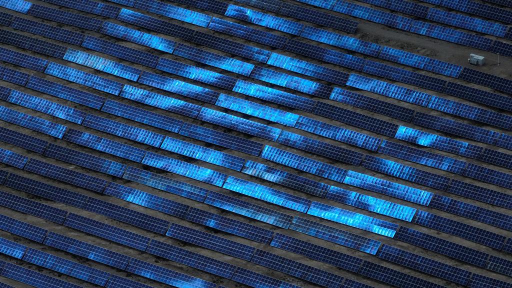 位于長(zhǎng)江源區(qū)的柴達(dá)木盆地,荒涼的戈壁灘一望無(wú)際。在柴達(dá)木盆地中部的青海省海西蒙古族藏族自治州格爾木市,一片片深藍(lán)色的“光伏海洋”在陽(yáng)光下閃耀著光芒。