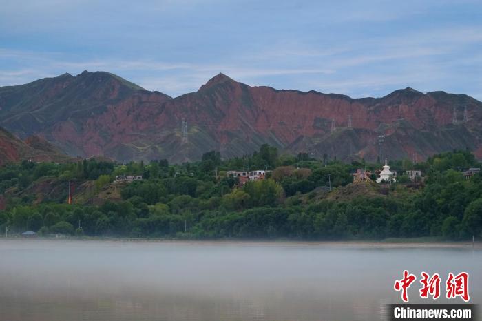 圖為降雨過后,黃河青海尖扎段的河面上升起薄霧。馬銘言 攝