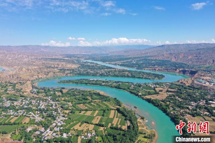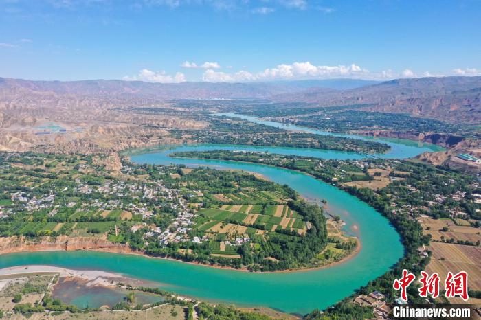 8月7日,航拍流經(jīng)青海省黃南藏族自治州尖扎縣境內(nèi)的黃河美景。地處青藏高原黃河谷地的尖扎縣,盛夏時節(jié),黃河岸畔綠意蔥蘢,河水清澈碧綠,與藍(lán)天白云構(gòu)成一幅幅夏日田園畫卷。