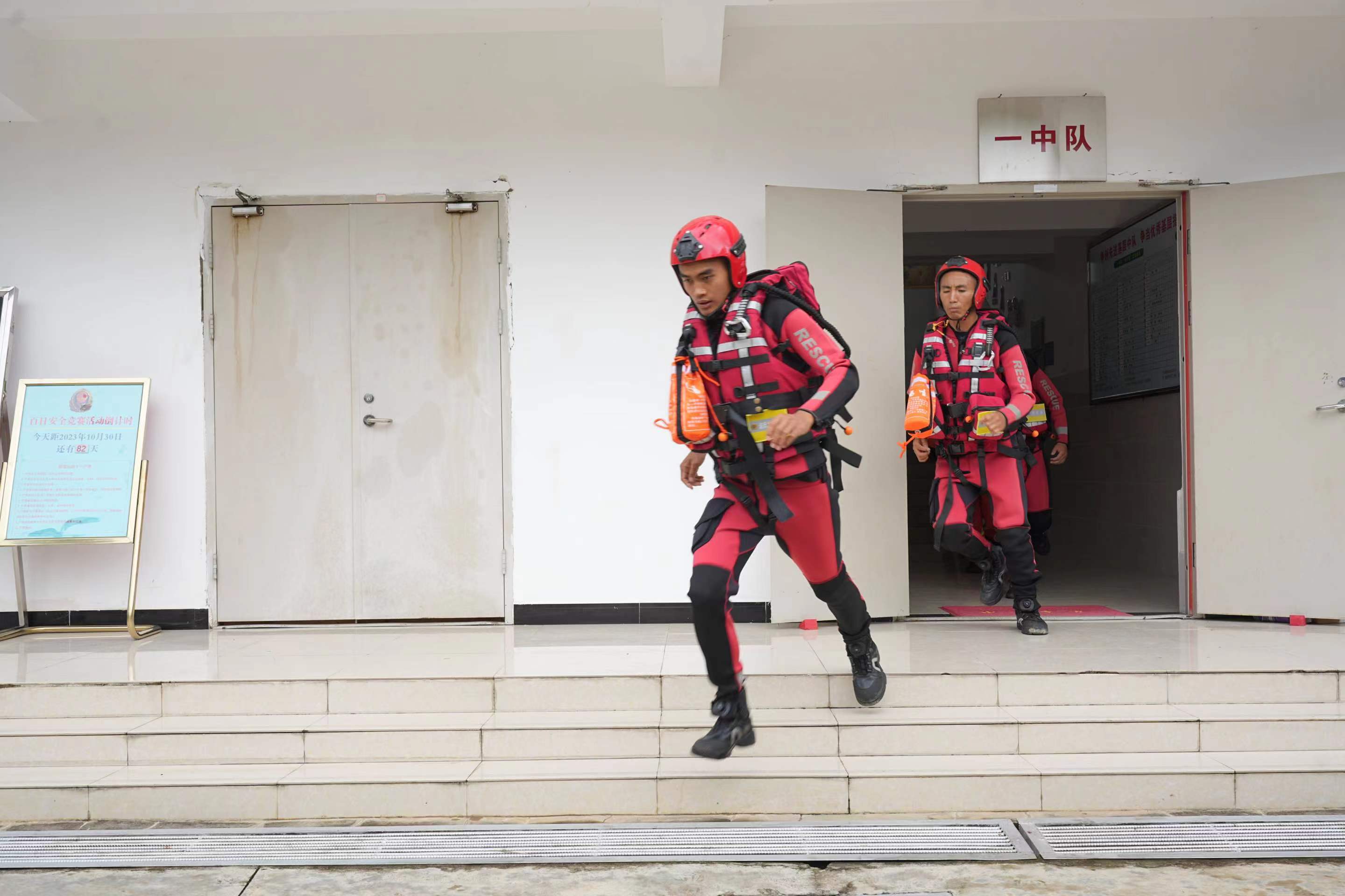 隨著警報(bào)聲響起,參戰(zhàn)隊(duì)員迅速更換戰(zhàn)斗著裝,攜帶戰(zhàn)斗裝具集結(jié)。到達(dá)模擬任務(wù)區(qū)域后,隊(duì)伍針對(duì)現(xiàn)場(chǎng)實(shí)際情況制定救援計(jì)劃,奔赴救援現(xiàn)場(chǎng)開展救援行動(dòng)。圖為演練現(xiàn)場(chǎng)。