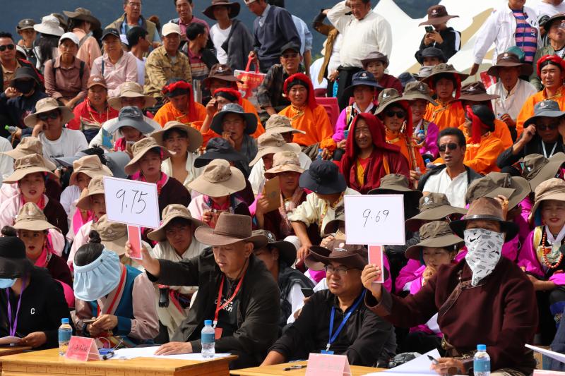 “參加比賽的隊伍,為弦子藝人、弦子愛好者,做好榜樣,豎起標(biāo)桿,用生動的歌詞,美妙的聲音,柔美的舞姿,表達(dá)雪域兒女心向黨、感恩黨、聽黨話、跟黨走的堅定信念,展現(xiàn)改革開放和脫貧攻堅給雪域兒女帶來的幸福新生活,展示世界的香格里拉璀璨的民族文化?!钡職J縣文化和旅游局局長張慶華介紹。