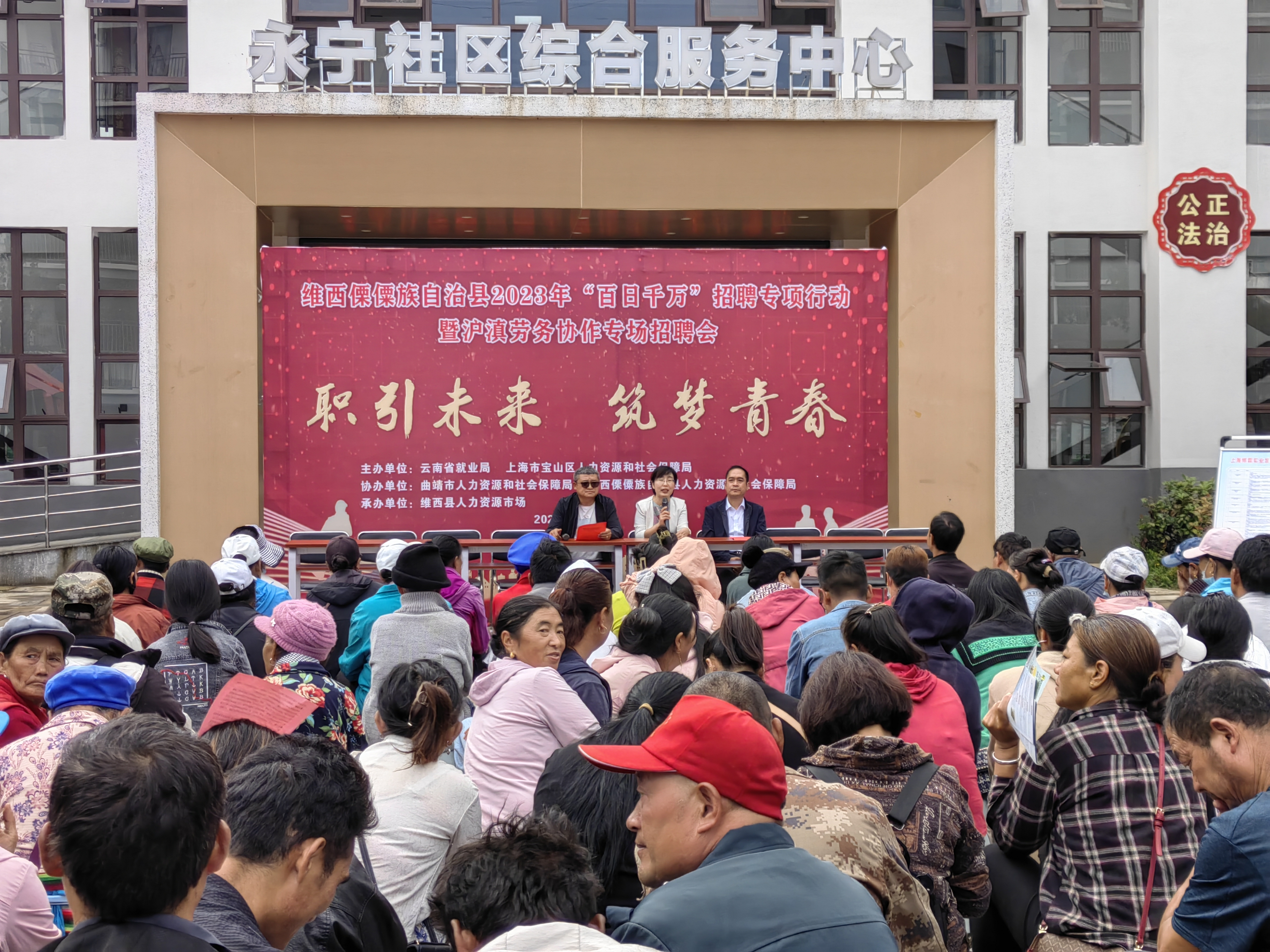 9月11日,由云南省就業(yè)局、上海市寶山區(qū)人社局、曲靖市人社局、維西縣人社局共同主辦的2023年“百日千萬(wàn)”招聘專項(xiàng)行動(dòng)暨滬滇勞務(wù)協(xié)作專場(chǎng)招聘會(huì)在維西縣保和鎮(zhèn)永寧社區(qū)舉辦。