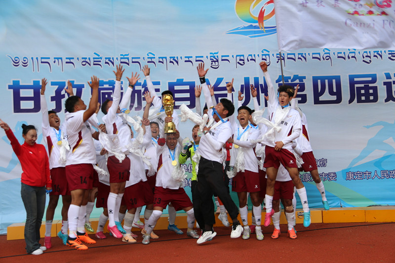 甘孜隊(duì)衛(wèi)冕捧杯。