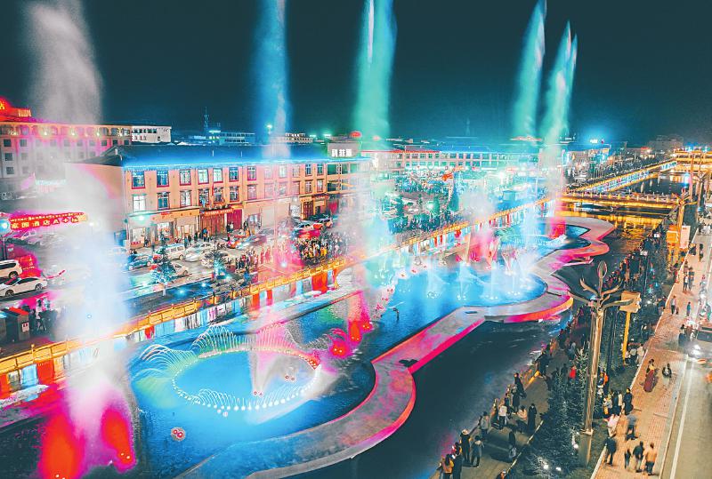 紅原縣城的新景觀——音樂(lè)噴泉。(圖片由紅原縣委宣傳部提供)