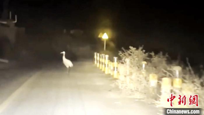 圖為受傷灰鶴站在路中間。曹民鍇 供圖