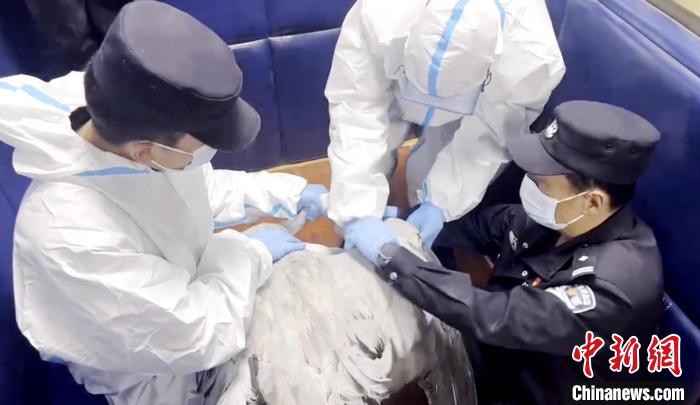 圖為民警和瑪可河林業(yè)局工作人員對(duì)灰鶴進(jìn)行詳細(xì)檢查。曹民鍇 供圖