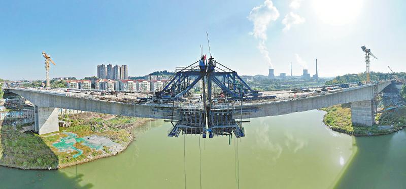 十一月二十六日,跨越沱江的內(nèi)江水心壩大橋及連接線工程正加緊施工,項(xiàng)目有望于年底通車。唐明潤 攝