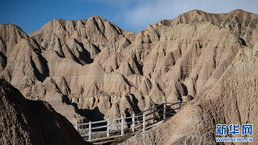 游客在龍羊峽土林地質(zhì)公園景區(qū)游玩。新華網(wǎng) 潘彬彬 攝