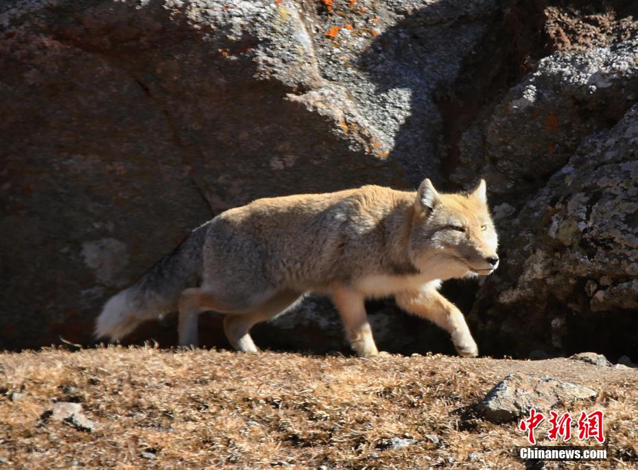 藏狐在山梁上踏步獨(dú)行。張齊民 攝