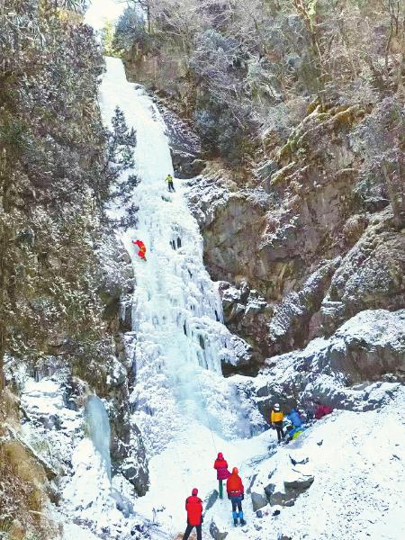 冰雪運(yùn)動(dòng)愛(ài)好者在四姑娘山攀冰。扎西 攝