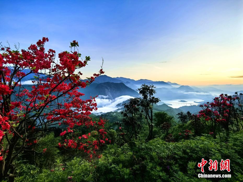 圖為杜鵑花在山野盛放,美如畫卷。伍排勇 攝
