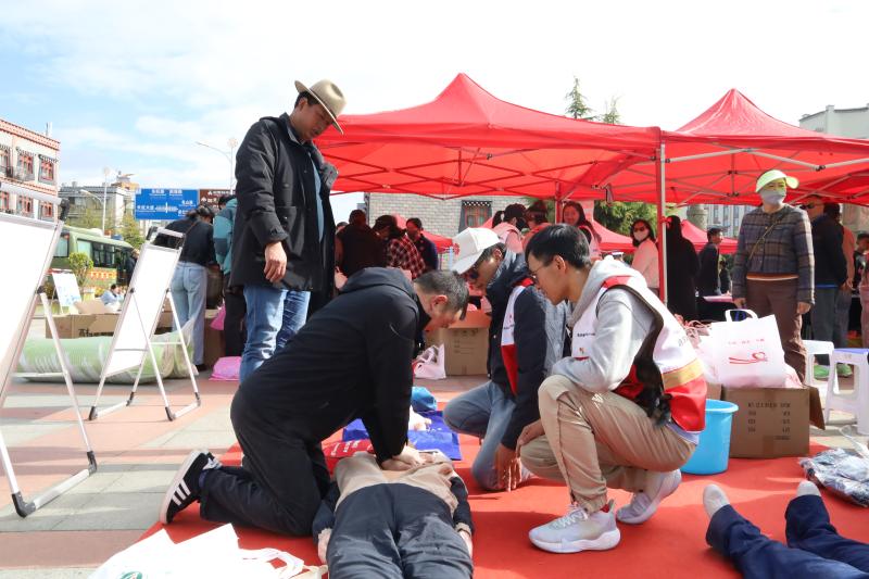 在裝備展示區(qū),展示了各種消防器材;在體驗區(qū),迪慶州紅十字會的工作人員對“傷口包扎”“心肺復(fù)蘇“等急救方法及要領(lǐng)進行了講解與演示并邀請群眾體驗;在宣傳展臺,工作人員向過路群眾發(fā)放防災(zāi)減災(zāi)知識讀本、宣傳手冊等,并對前來咨詢的居民詳細講解突發(fā)事件的種類及基本的逃生手段和防護措施等內(nèi)容,切實提升群眾的防災(zāi)減災(zāi)能力。