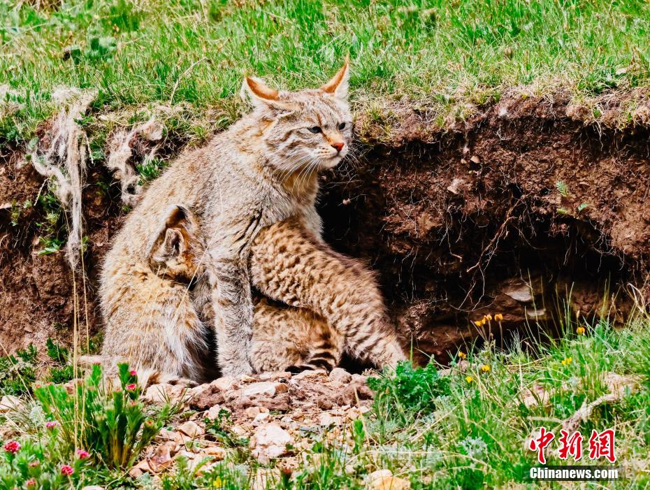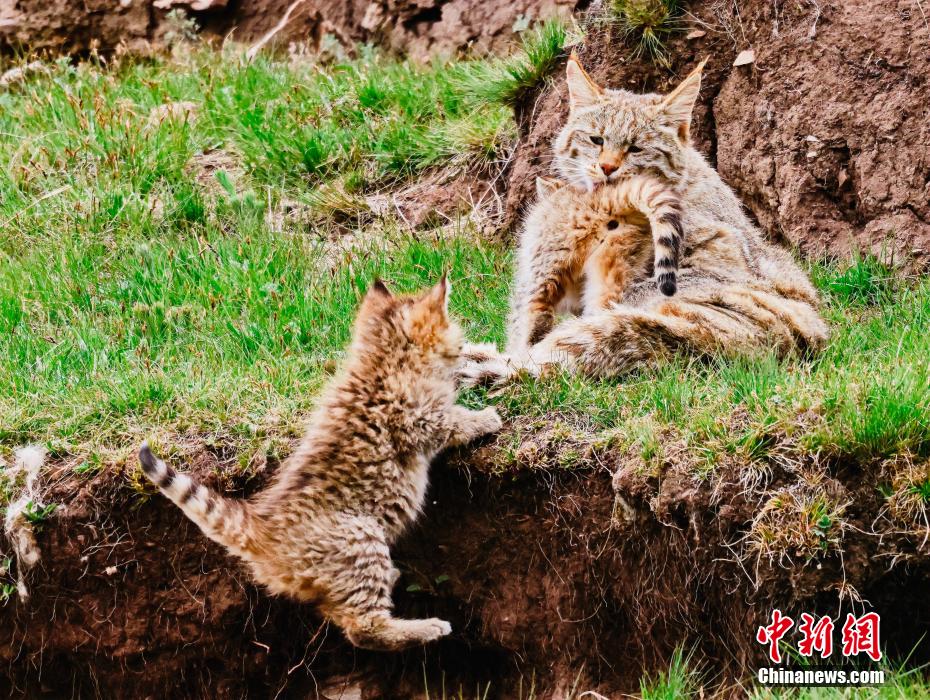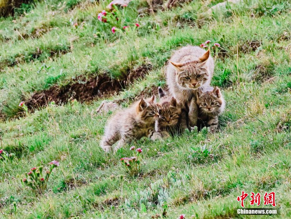 6月15日,盛夏時(shí)節(jié),在青海省海北藏族自治州海晏縣哈勒景蒙古族鄉(xiāng)查庫(kù)太草原上,攝影愛(ài)好者拍攝到荒漠貓幼崽出窩“踏青”的畫面。畫面中,荒漠貓幼崽或是與媽媽嬉戲玩耍,或是“哥仨”追逐打鬧,或是練習(xí)捕獵技巧,甚是呆萌可愛(ài)。荒漠貓分布于青藏高原東部,是中國(guó)特有的貓科動(dòng)物,國(guó)家一級(jí)重點(diǎn)保護(hù)野生動(dòng)物。