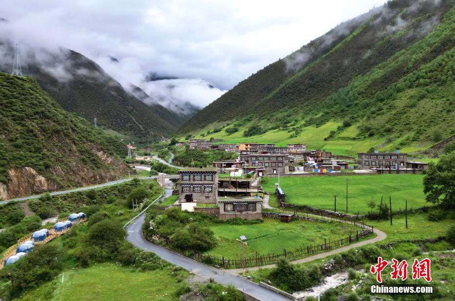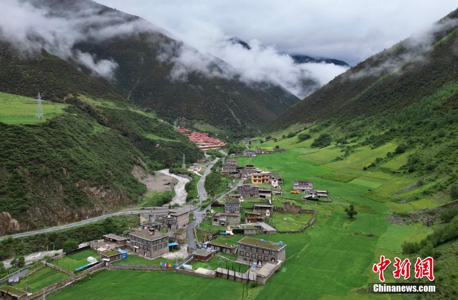 圖為6月27日,航拍措普溝景區(qū)內(nèi)的達(dá)塔村。(無人機(jī)照片)中新社記者 王磊 攝
