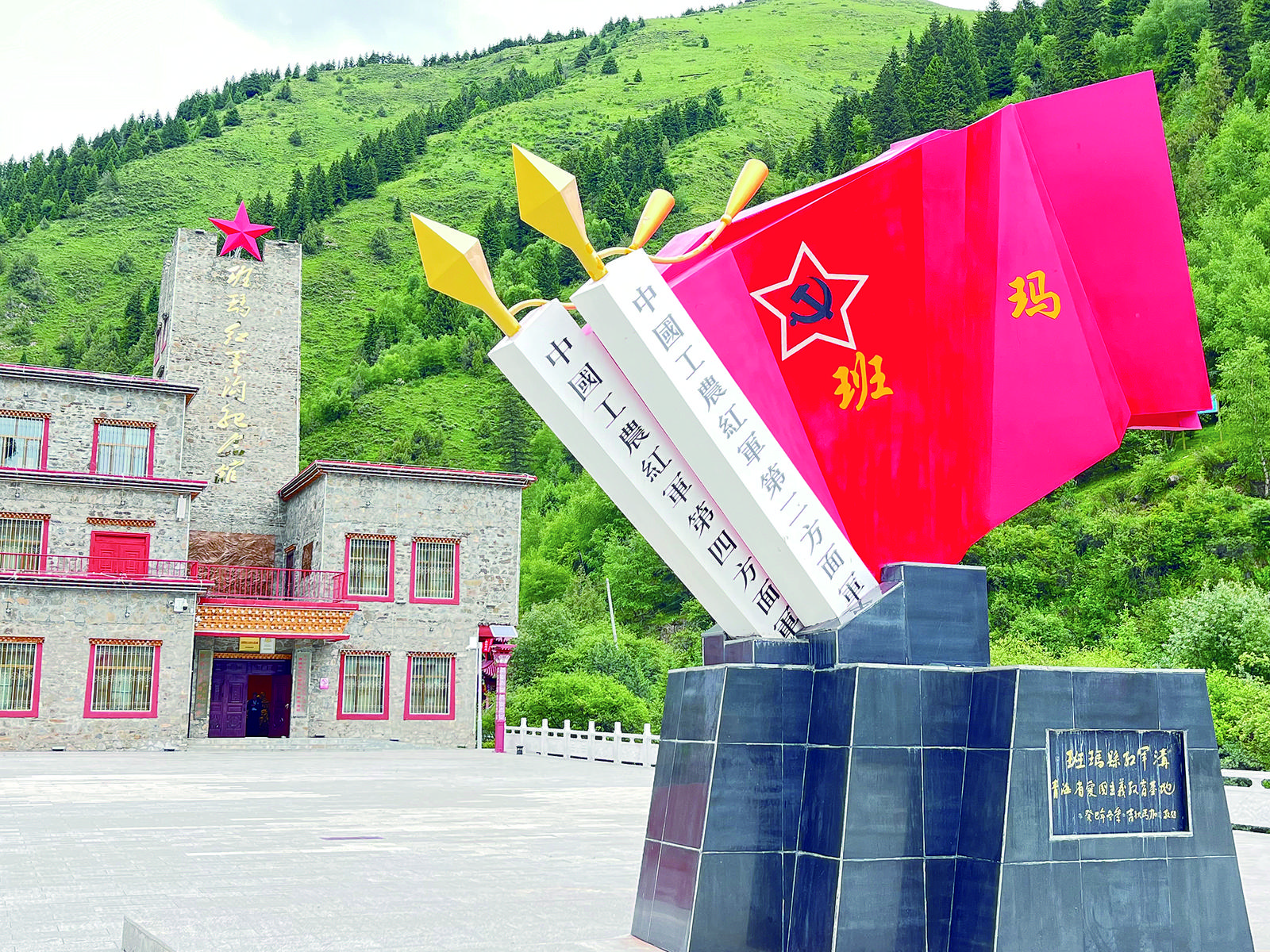 班瑪紅軍溝景區(qū)內的紅旗雕塑。李永波 攝