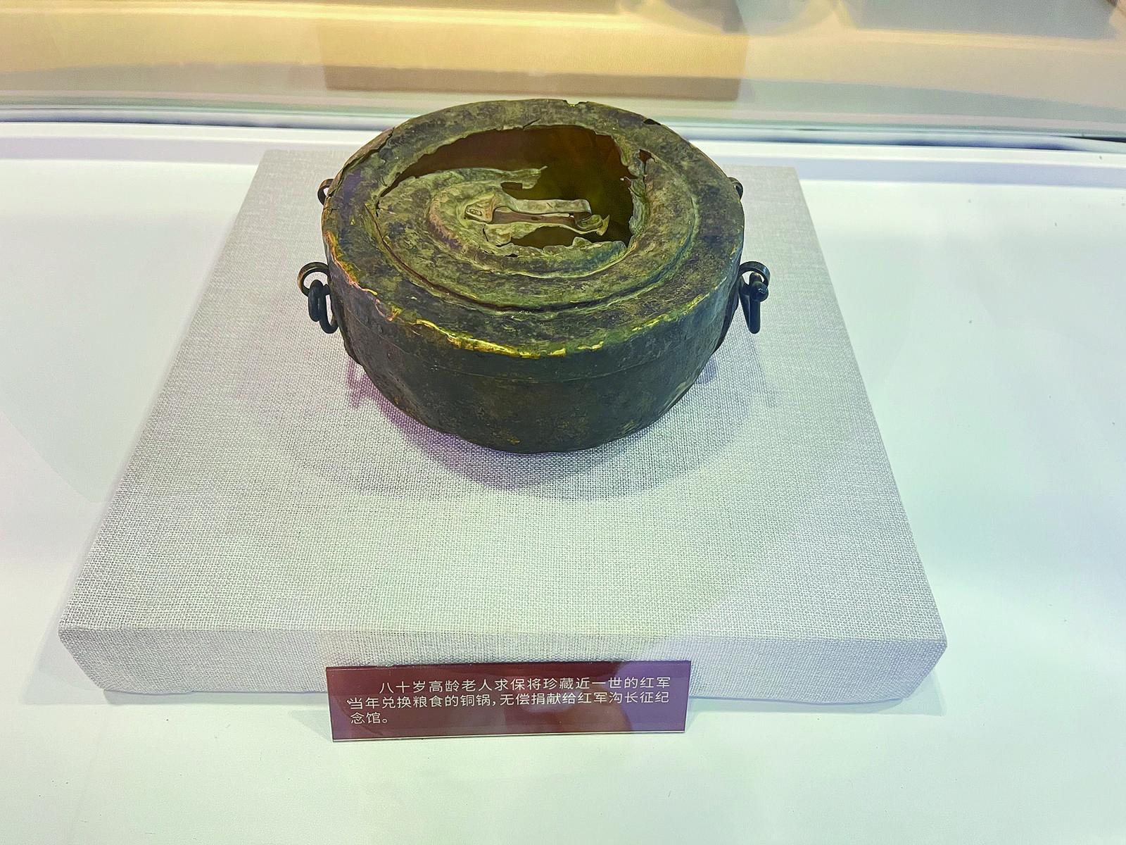 紅軍溝紀念館內陳列的銅鍋。