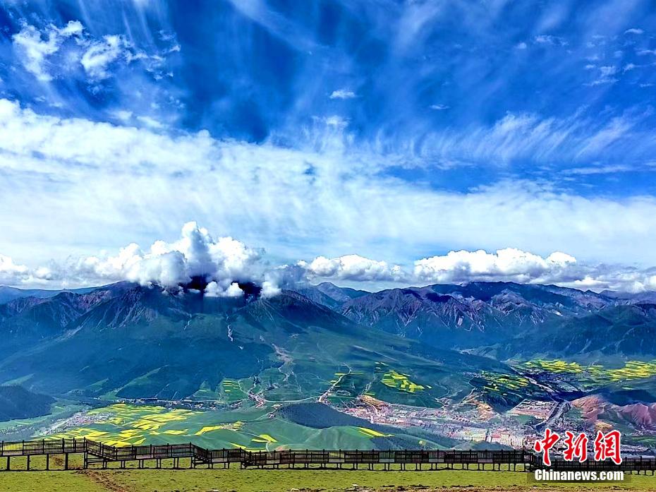 夏入三伏,記者在青海省海北藏族自治州祁連縣境內(nèi)的天境山山巔,拍攝到祁連山腹地云霧繚繞,云彩在藍(lán)天上“擺”出不同造型,甚是迷人,讓人不禁想吟唱“向云端”。每年的7月至9月是祁連風(fēng)景的最佳觀賞時(shí)期,“山之宗,水之源,山水共長(zhǎng)天”的景象可盡收眼底,隨手一拍就是一張完美的護(hù)眼桌面。