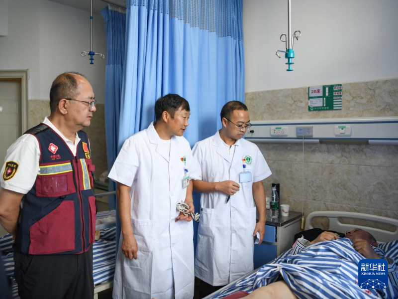 7月22日,在四川省雅安市漢源縣人民醫(yī)院,醫(yī)療專家在檢查傷員傷情。新華社記者 王曦 攝