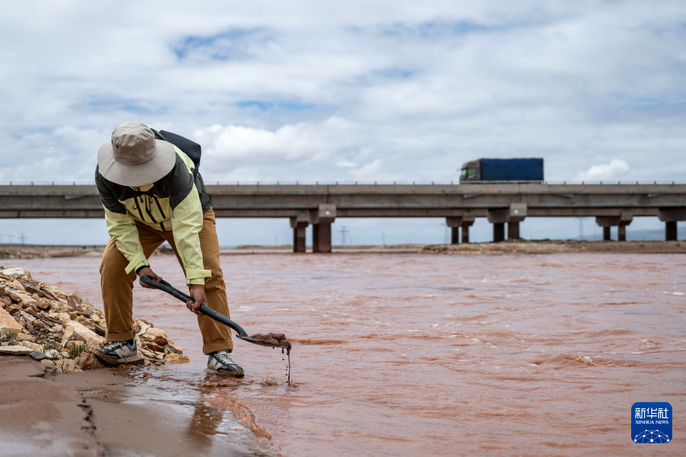 7月26日,科考隊員在楚瑪爾河進(jìn)行床沙采集工作。新華社記者 伍志尊 攝