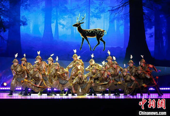 圖為晚會現(xiàn)場進(jìn)行舞蹈表演《黃金騎士》。中新社記者 馬銘言 攝