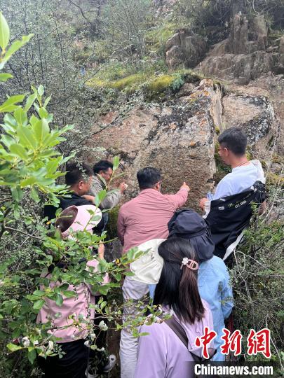 圖為科研調(diào)查隊(duì)解讀崖壁上的題記。葉拉太 供圖