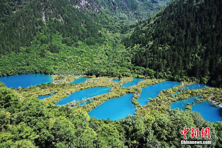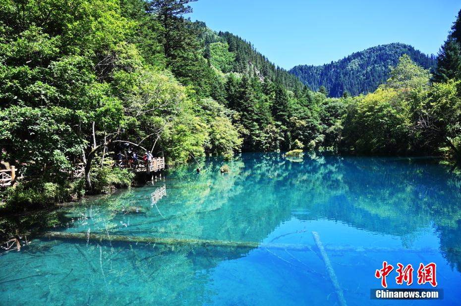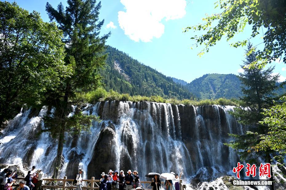 8月13日,世界自然遺產(chǎn)地九寨溝景區(qū)風景如畫,吸引眾多游客觀光游玩。
