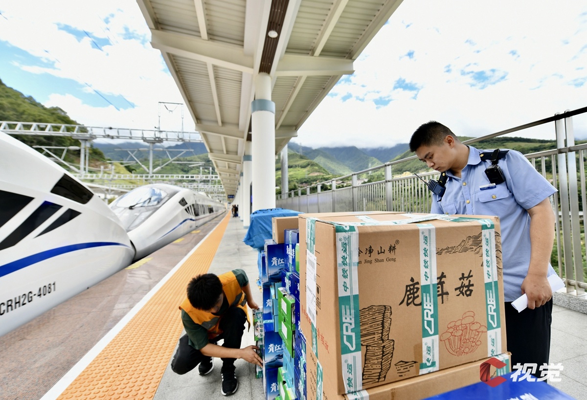 隨著8月30日川青鐵路鎮(zhèn)江關(guān)至黃勝關(guān)段首趟動車開行,高鐵快運(yùn)業(yè)務(wù)也在茂縣站同步開通辦理,這是川青鐵路成都東至黃勝關(guān)段首次面向沿線客戶受理高鐵快運(yùn)業(yè)務(wù)。9月10日,中鐵快運(yùn)成都分公司茂縣站營業(yè)部的工作人員將貨物有序裝車送至茂縣站,經(jīng)過安檢后,這些貨物被搬上松潘開往峨眉山的C5788次列車,最終送達(dá)成都東站。