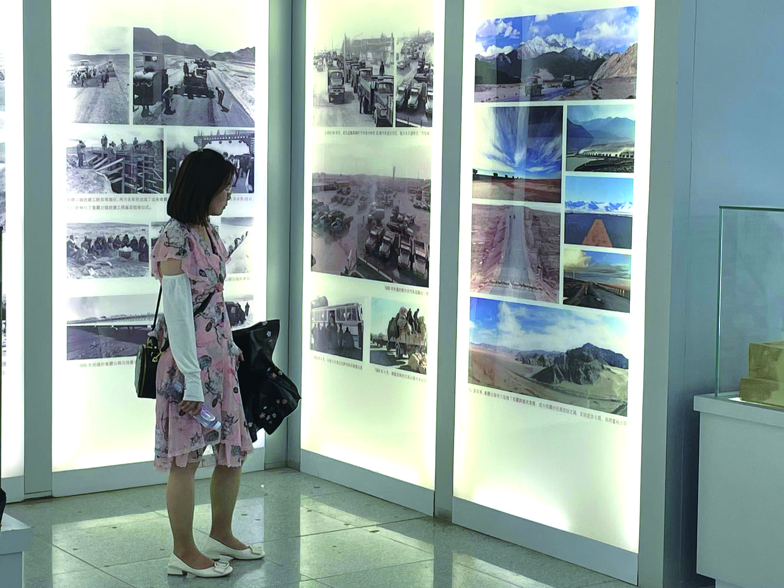 第一展廳里,那豐富的資料如同一幅幅畫(huà)卷,圍繞著“一位將軍、一條公路、一個(gè)奇跡、一段歷史、一座新城、一種精神”徐徐展開(kāi),每一張圖片、每一段文字都在講述著格爾木發(fā)展歷程中那些動(dòng)人心弦的故事。