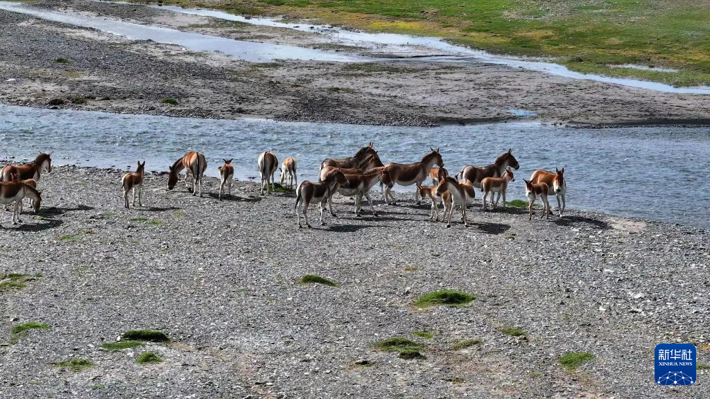 這是8月9日在位于三江源國家公園長江源園區(qū)的曲麻萊縣境內(nèi)拍攝的藏野驢(無人機(jī)照片)。 新華社發(fā)(昂江 攝)