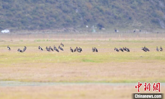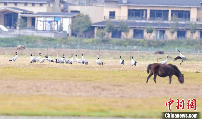 云南省迪慶藏族自治州納帕海省級自然保護區(qū)管護局(下稱“納帕海管護局”)10月17日監(jiān)測發(fā)現(xiàn),首批共91只國家一級重點保護野生動物黑頸鶴和黑鸛飛抵納帕海越冬。
