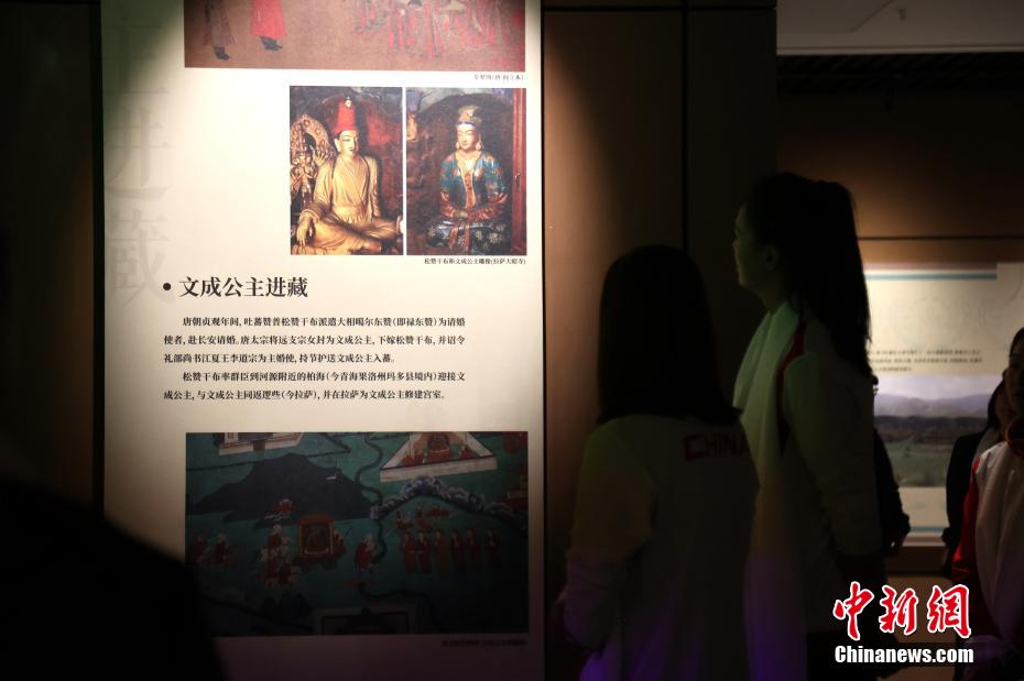 圖為奧運冠軍在海南州了解文成公主進(jìn)藏歷史。中新社記者 張?zhí)砀?攝