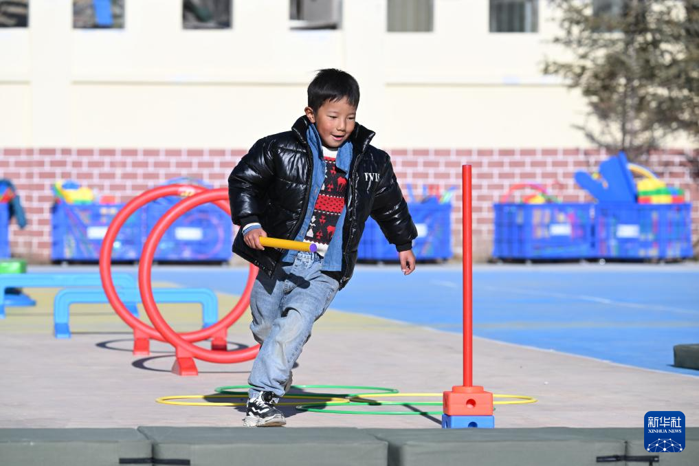 11月14日,在天峻縣第三幼兒園,小朋友在玩耍。新華社記者 李占軼 攝