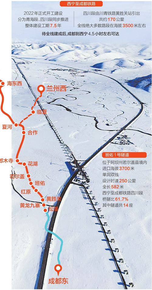 茫茫雪原中,鐵路建設(shè)還在向前推進。待西寧至成都鐵路全線建成,兩地鐵路旅行時間將縮短至4.5小時左右,較目前省時一半,鐵路大動脈也將行經(jīng)紅軍走過的草原、雪山,把大西北和大西南緊密相連。