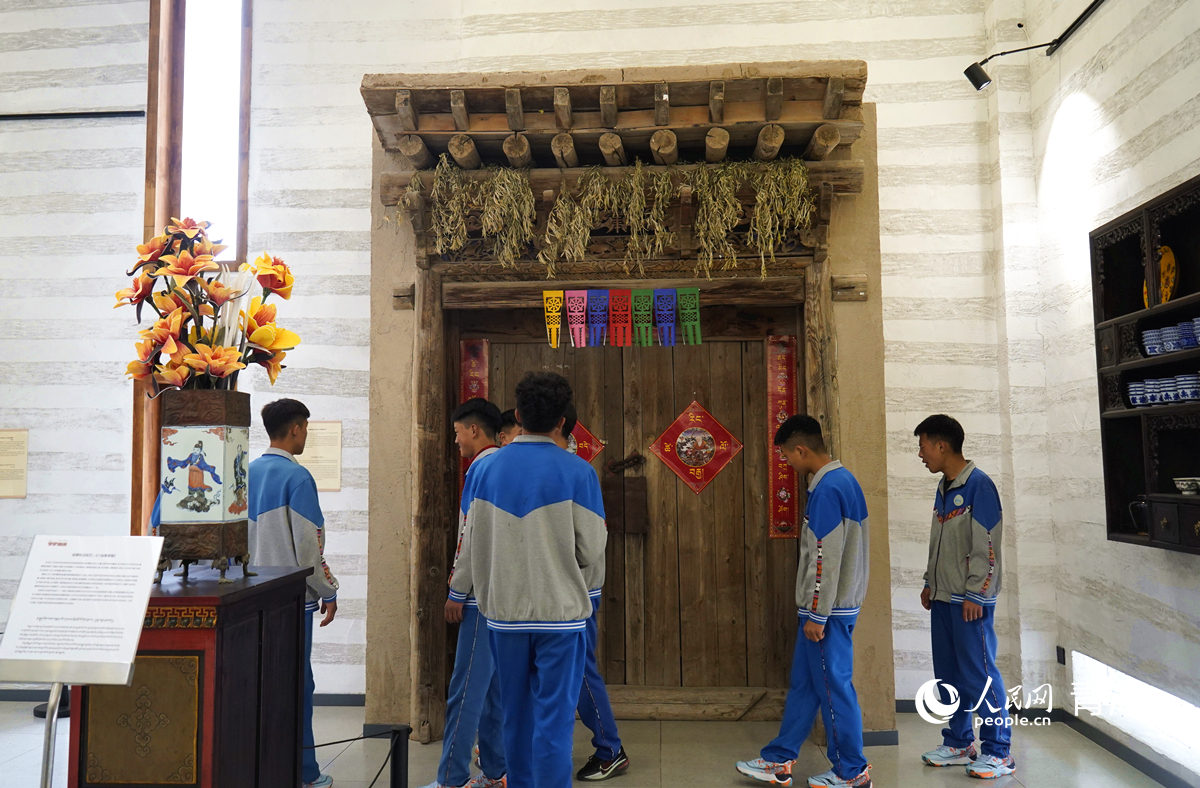 學(xué)生們參觀同倉,被藏式宅門所吸引。人民網(wǎng)記者 楊啟紅 攝