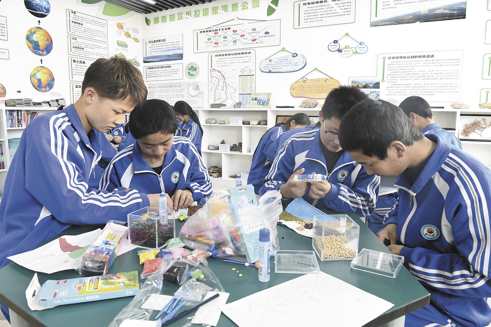 學(xué)生正在開(kāi)展地質(zhì)科普手工。才貢加 張多鈞 攝
