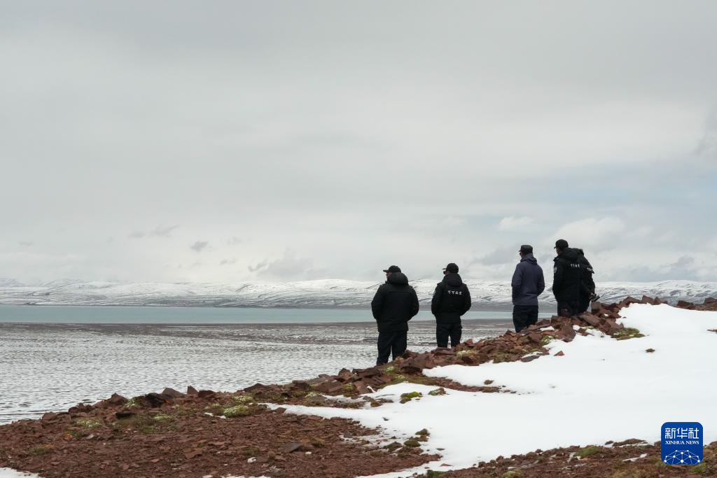 巡山隊(duì)員在可可西里卓乃湖附近巡護(hù)(7月3日攝)。新華社記者 杜笑微 攝
