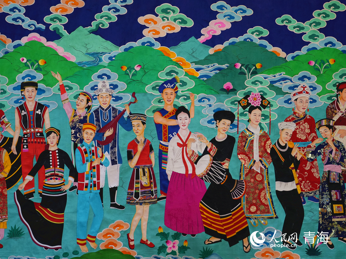 熱貢藝術(shù)之堆繡作品。人民網(wǎng)記者 楊啟紅 攝