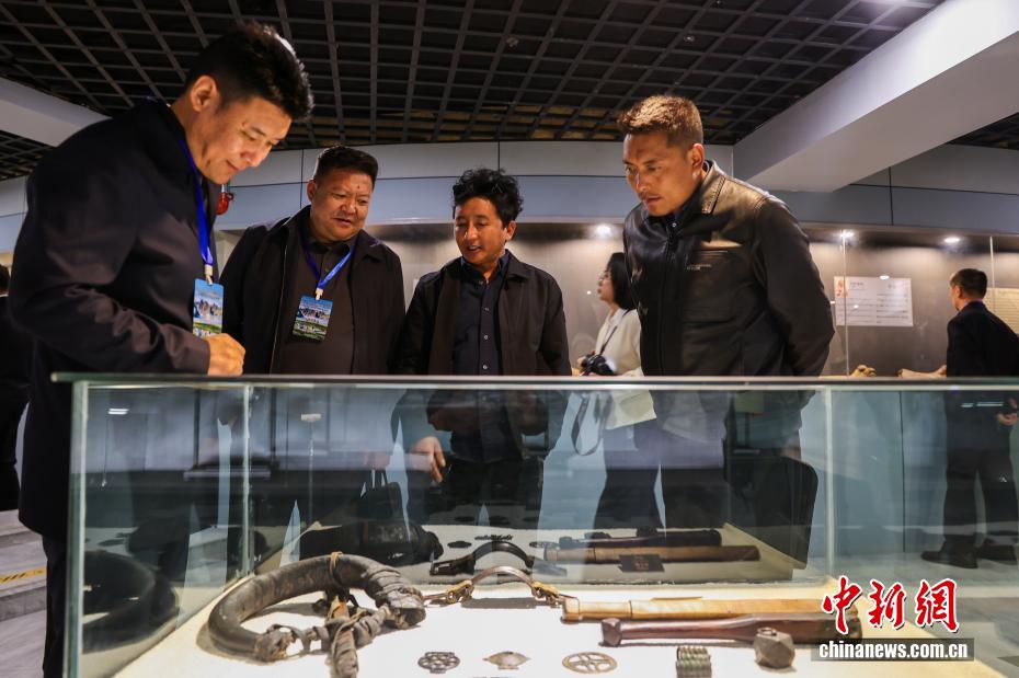 8月15日,游客參觀青海省果洛藏族自治州久治縣鑄牢中華民族共同體意識(shí)教育基地。該教育基地外觀突出中華文化的八角建筑特色和藏式地域民俗特色,借助5000多件文物、古董,講述生活在青藏高原的中國(guó)各民族交往交流交融的歷史故事。中新社記者 薛蒂 攝