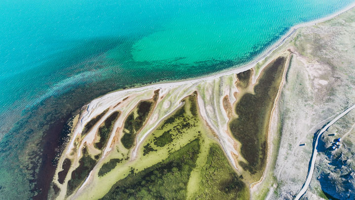 2020年7月5日,黃河源頭的扎陵湖水面翠藍(lán)。北岸,一支科考隊(duì)伍打破荒原的寧?kù)o。