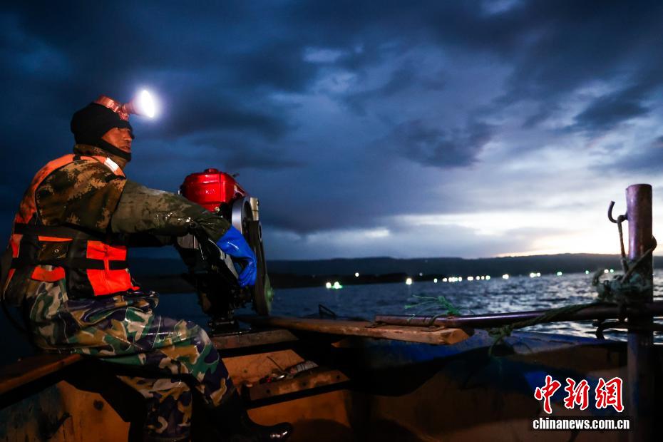 10月14日清晨,青海省海南藏族自治州的龍羊峽庫區(qū),漁民借用燈光誘捕肉質(zhì)細(xì)嫩的池沼公魚。龍羊峽庫區(qū)水域面積383平方公里,擁有黃河上游第一座大型梯級電站——龍羊峽水電站。庫區(qū)水質(zhì)潔凈,漁業(yè)資源豐富,每年8月20日至11月20日是池沼公魚捕撈期,僅這一項(xiàng)收入就能給每戶漁民家庭帶來近10萬元(人民幣)的收入。