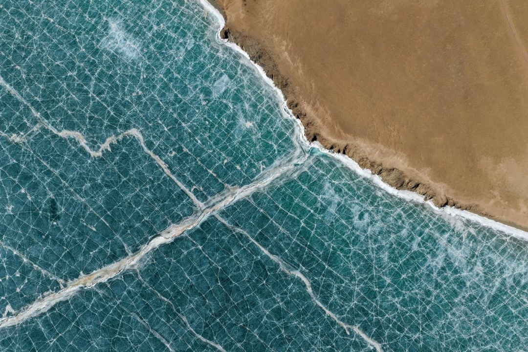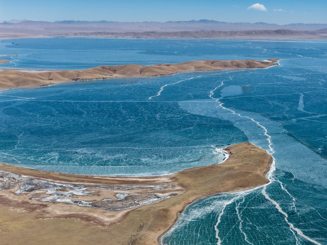 這是2026年3月10日在青海省果洛藏族自治州瑪多縣境內(nèi)拍攝的扎陵湖一角(無人機(jī)照片)。新華社記者 張龍 攝