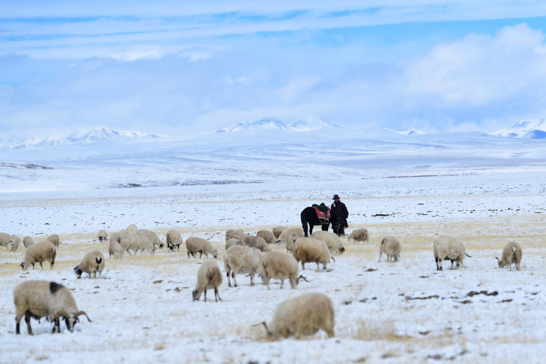 2021年10月20日,在青海省果洛藏族自治州瑪多縣,牧民在放牧。新華社記者 張龍 攝