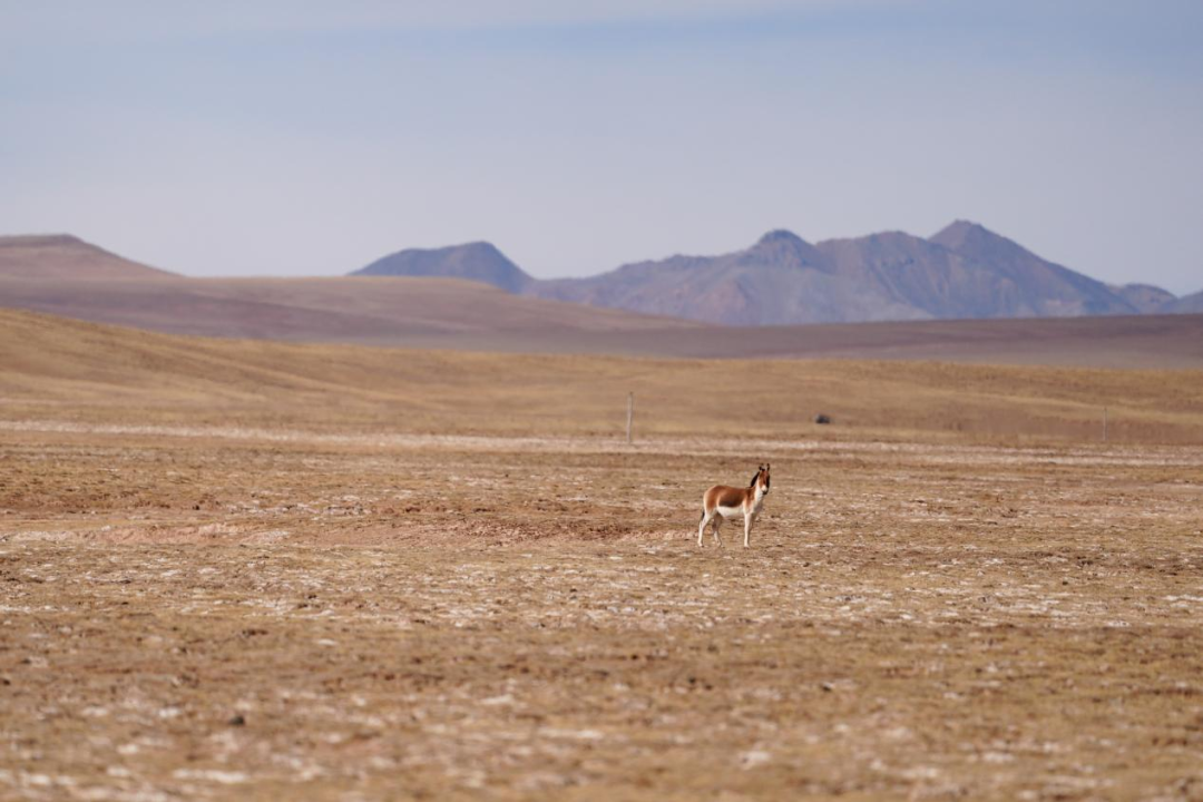 2026年3月10日,在青海省果洛藏族自治州瑪多縣境內(nèi)的黃河源地區(qū),一只藏野驢在覓食。新華社記者 張龍 攝